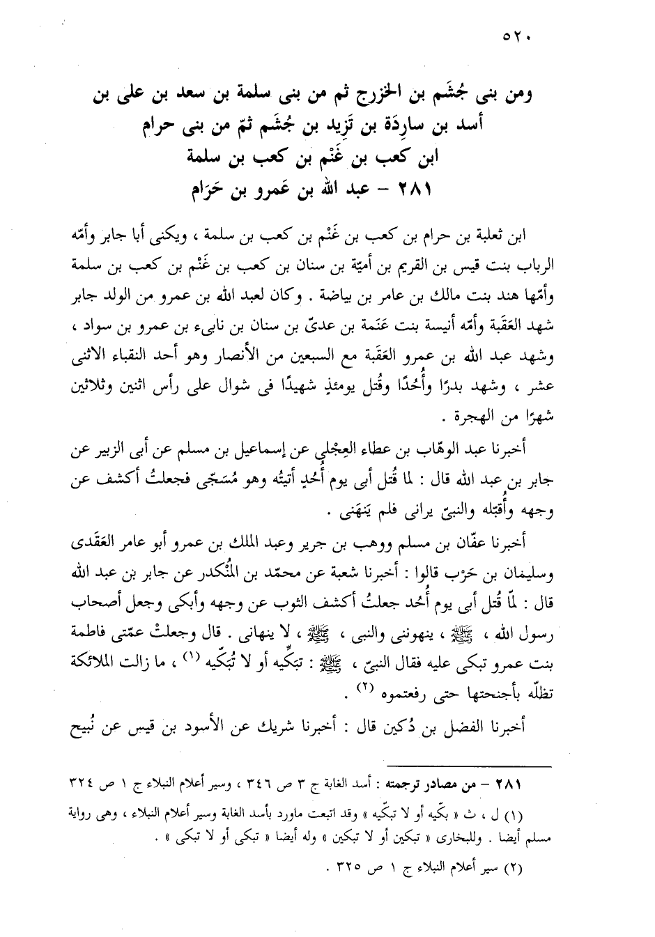 ٢٨١ - من مصادر ترجمته: أسد الغابة ج ٣ ص ٣٤٦، وسير أعلام النبلاء ج ١ ص ٣٢٤.