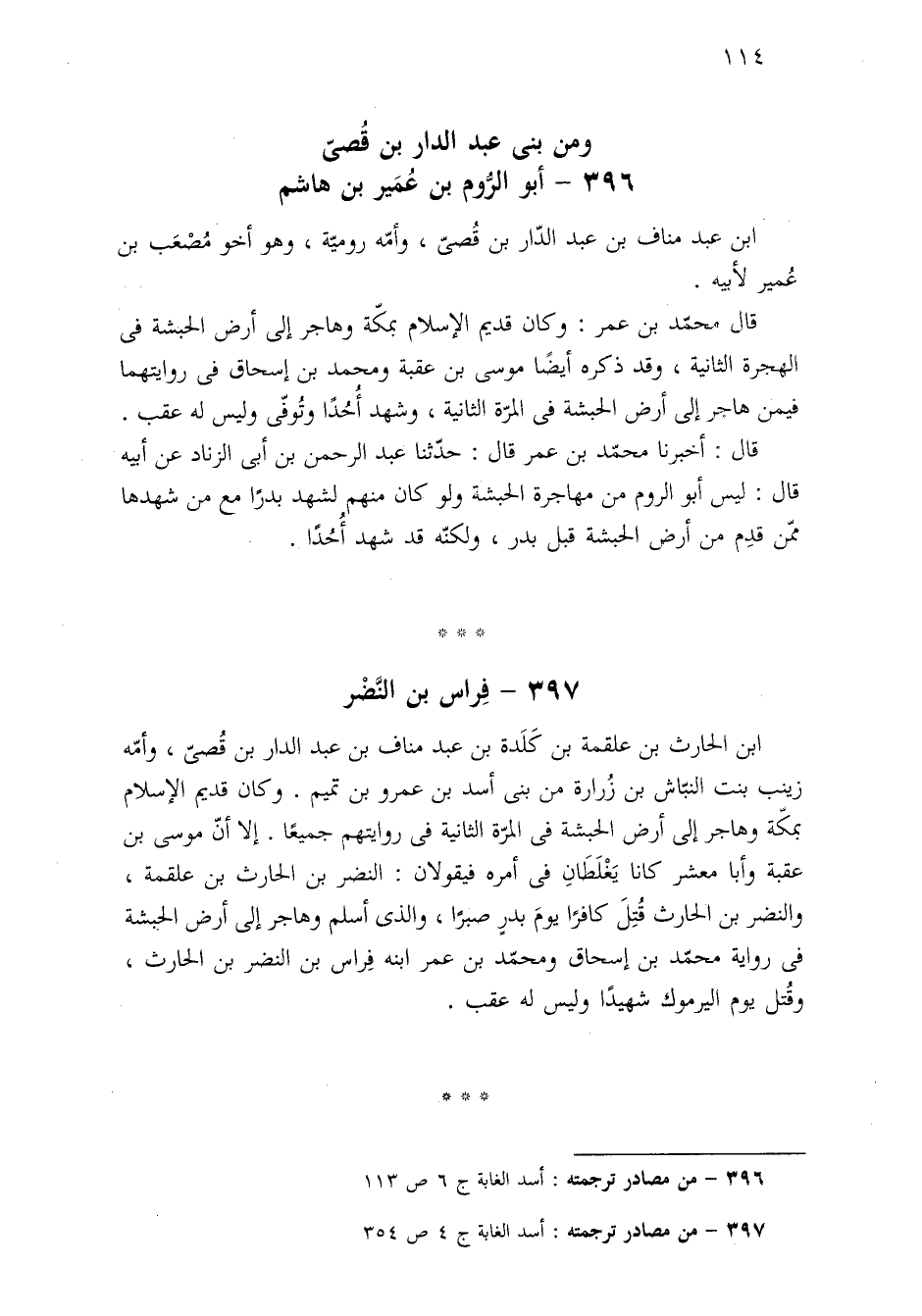 ٣٩٦ - من مصادر ترجمته: أسد الغابة ج ٦ ص ١١٣.