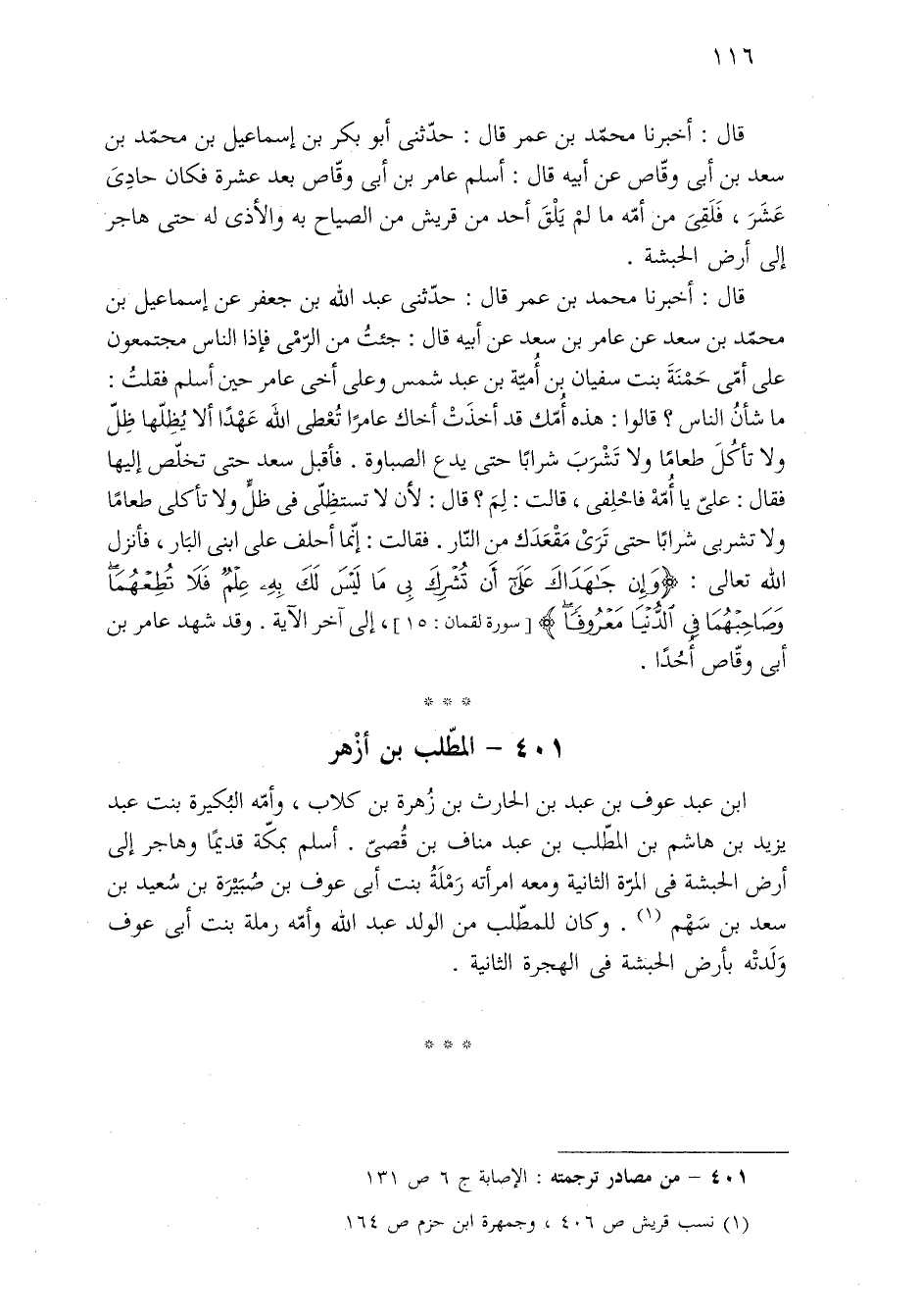 ٤٠١ - من مصادر ترجمته: الإصابة ج ٦ ص ١٣١.