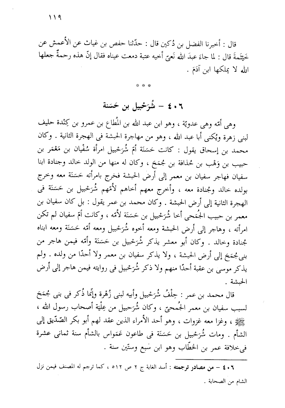 ٤٠٦ - شُرَحْبيل بن حَسَنة