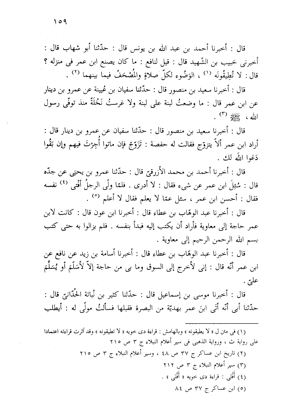 (¬٢) تاريخ ابن عساكر ج ٣٧ ص ٤٨، وسير أعلام النبلاء ج ٣ ص ٢١٥.