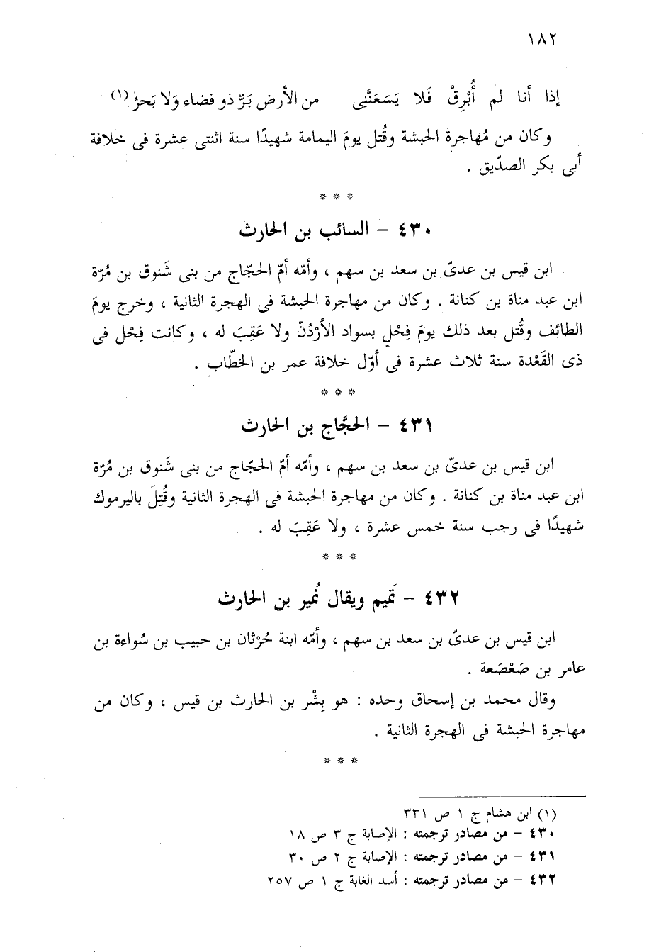 ٤٣٠ - من مصادر ترجمته: الإصابة ج ٣ ص ١٨.