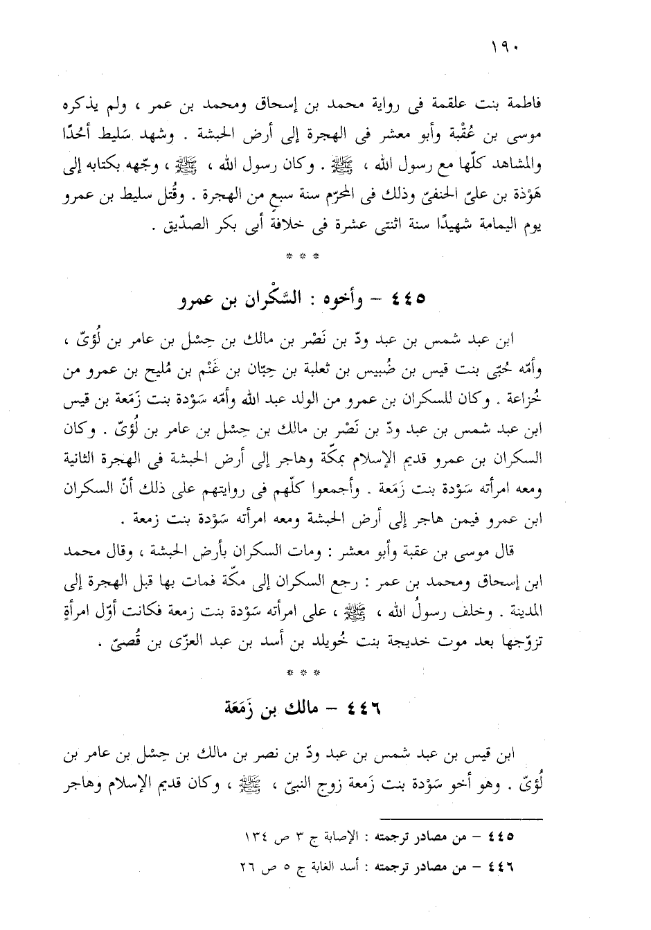 ٤٤٥ - من مصادر ترجمته: الإصابة ج ٣ ص ١٣٤.