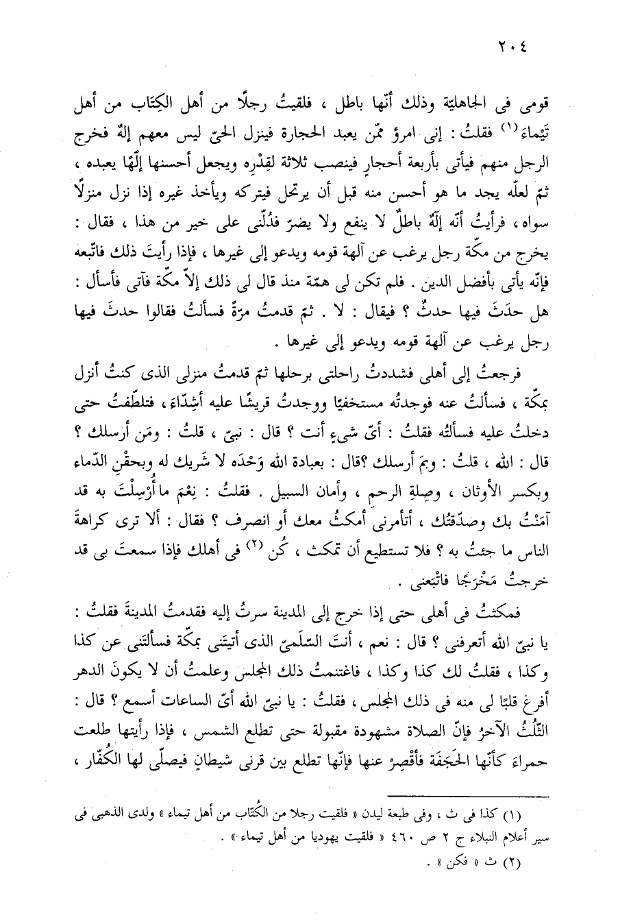 (¬١) كذا في ث، وفى طبعة ليدن "فلقيت رجلا من الكُتّاب من أهل تيماء" ولدى الذهبي في سير أعلام النبلاء ج ٢ ص ٤٦٠ "فلقيت يهوديا من أهل تيماء".