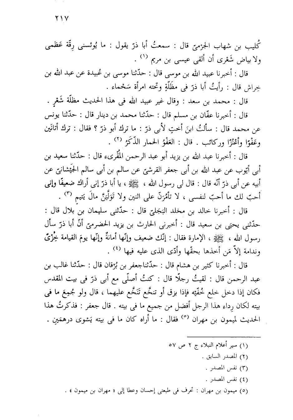 (¬٥) ميمون بن مهران: تحرف في طبعتى إحسان وعطا إلى "مهران بن ميمون".