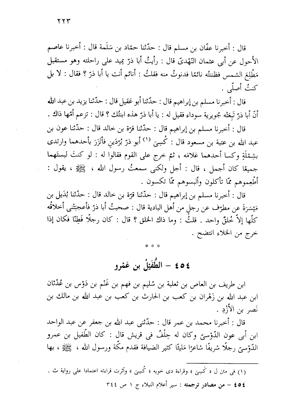 ٤٥٤ - من مصادر ترجمته: سير أعلام النبلاء ج ١ ص ٣٤٤.