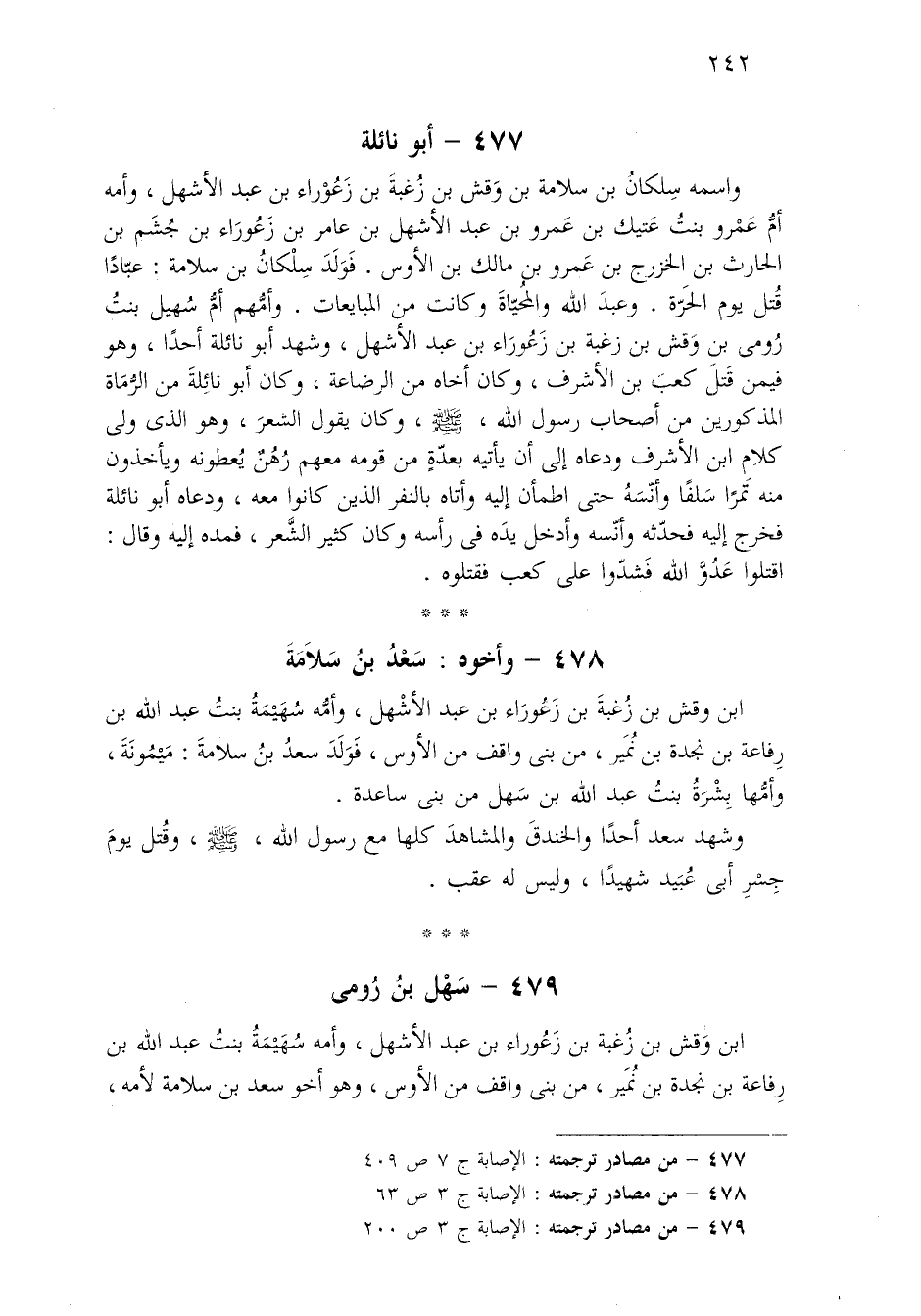 ٤٧٧ - من مصادر ترجمته: الإصابة ج ٧ ص ٤٠٩.