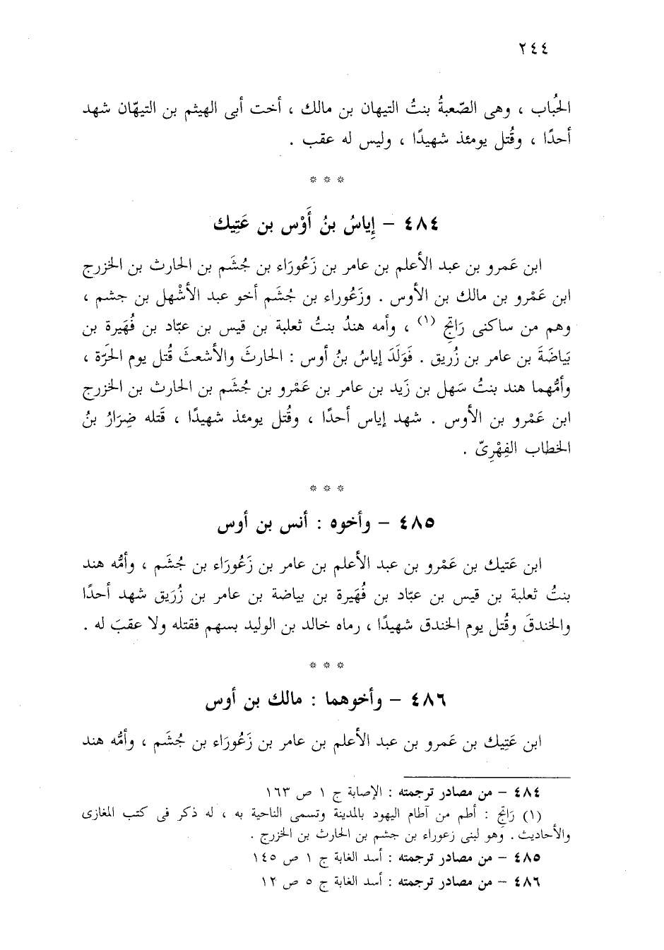 ٤٨٥ - من مصادر ترجمته: أسد الغابة ج ١ ص ١٤٥.