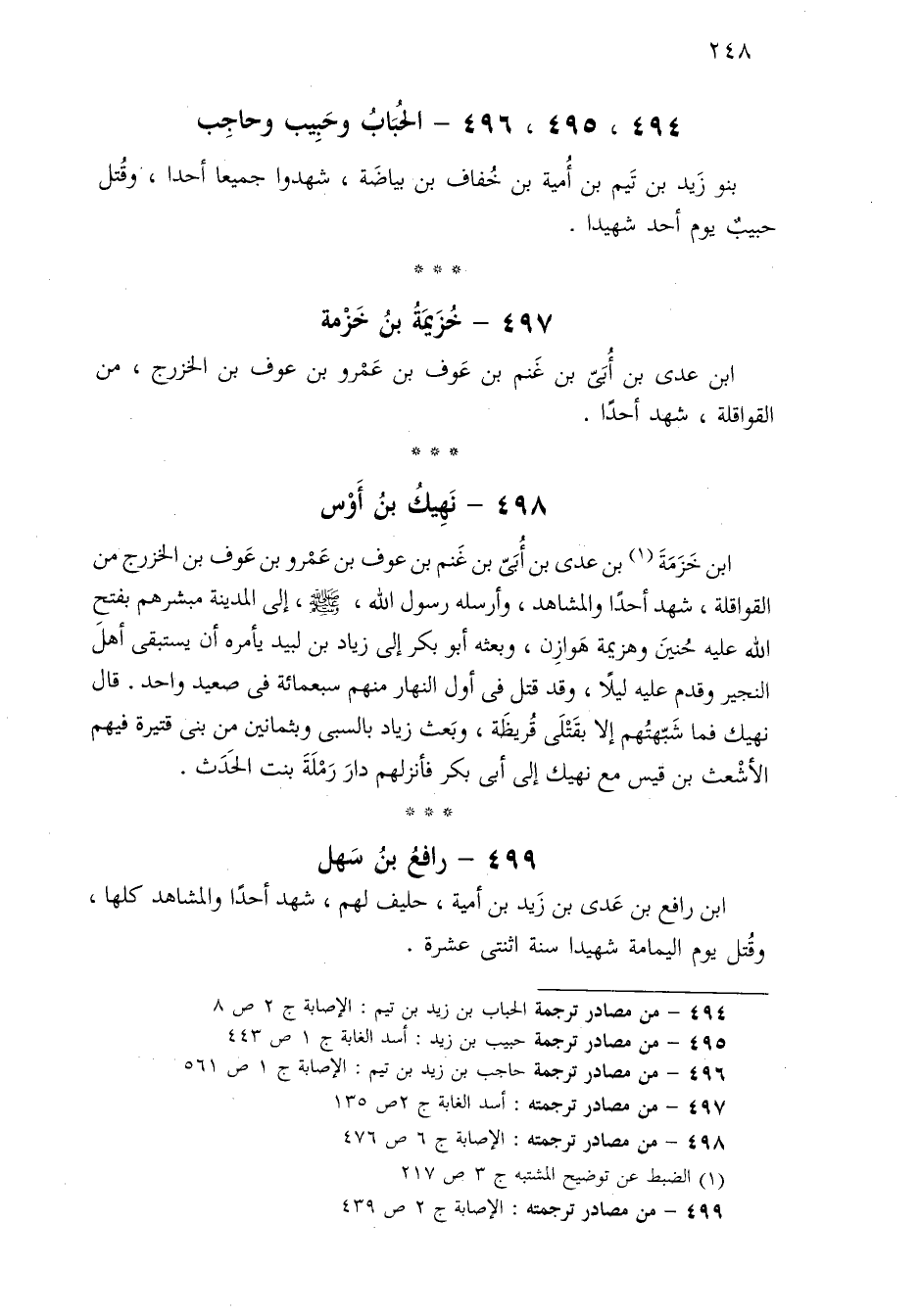 ٤٩٤ - من مصادر ترجمة الحباب بن زيد بن تيم: الإصابة ج ٢ ص ٨.