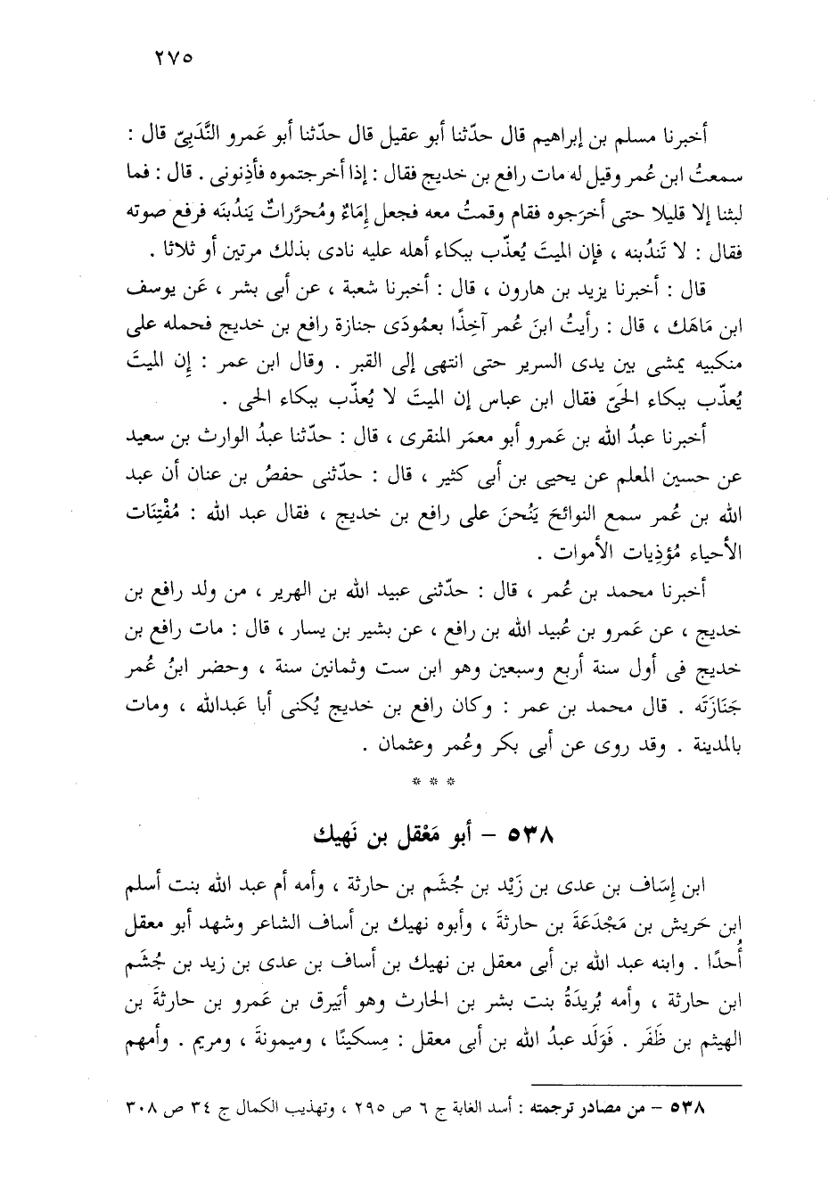 ٥٣٨ - من مصادر ترجمته: أسد الغابة ج ٦ ص ٢٩٥، وتهذيب الكمال ج ٣٤ ص ٣٠٨.