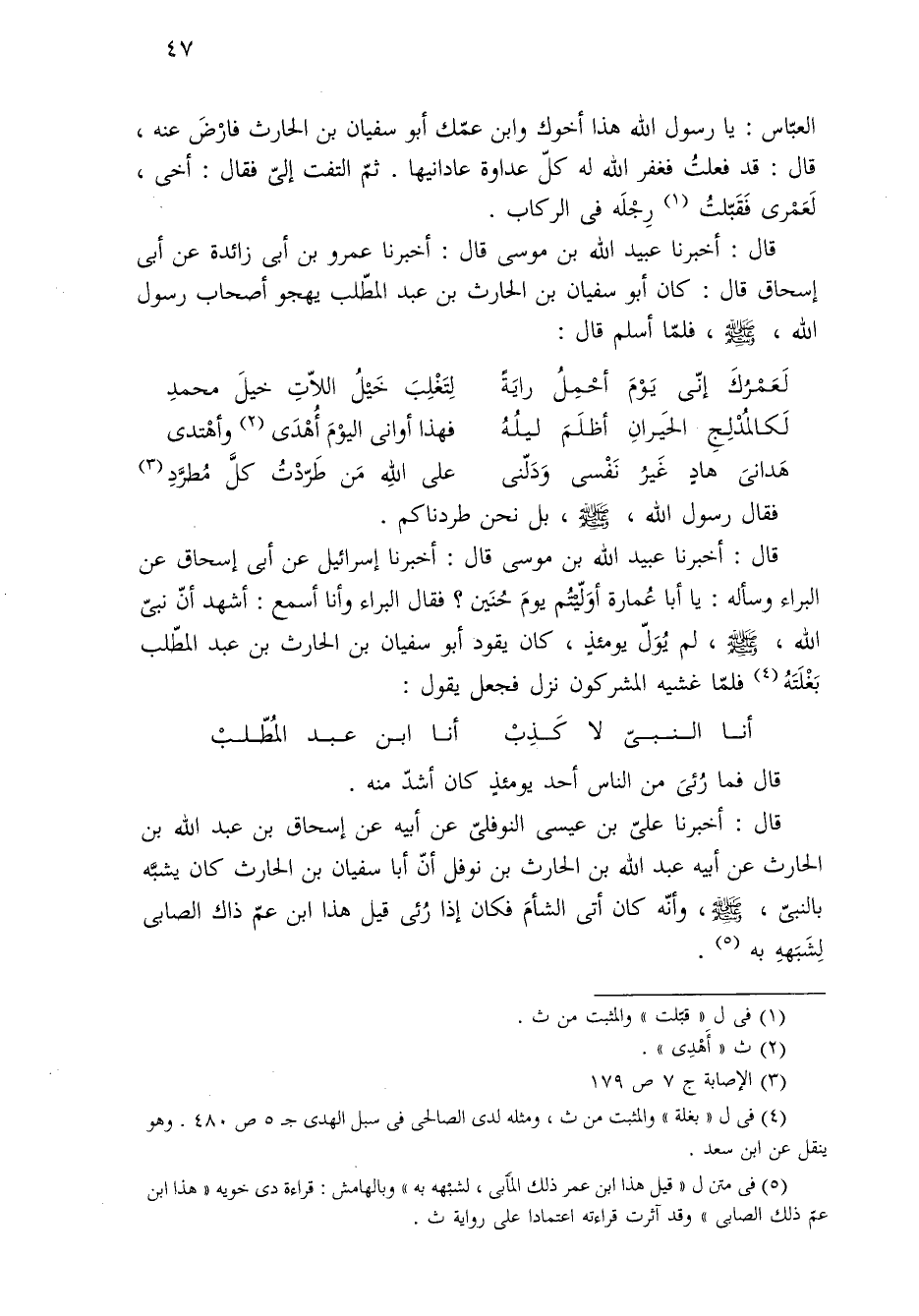 (¬٥) في متن ل "قيل هذا ابن عمر ذلك المَأّبي، لشبْهه به" وبالهامش: قراءة دى خويه "هذا ابن عمّ ذلك الصابي" وقد آثرت قراءته اعتمادًا على رواية ث.