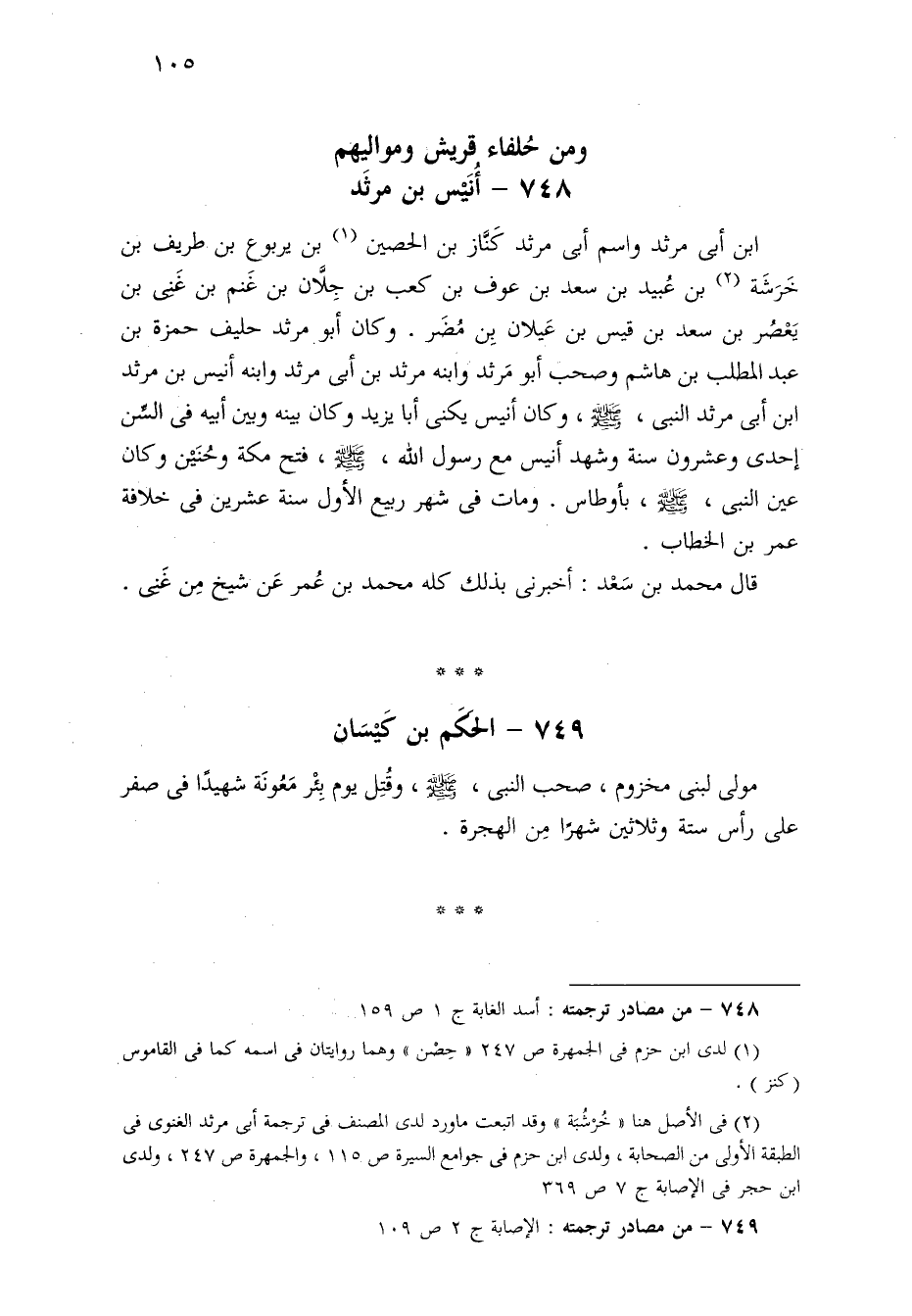 ٧٤٩ - من مصادر ترجمته: الإصابة ج ٢ ص ١٠٩.