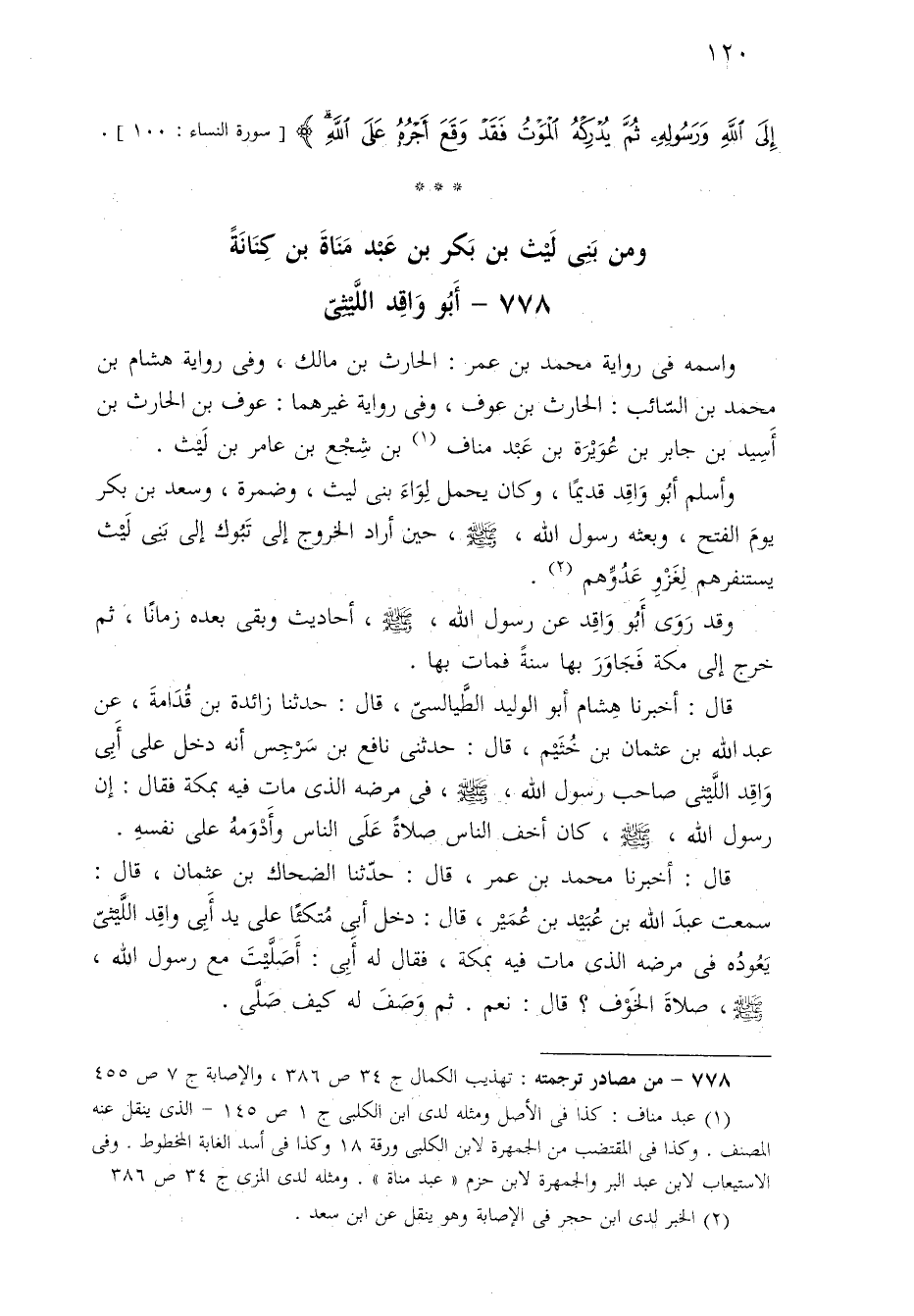 ٧٧٨ - أَبُو وَاقِد اللَّيْثِيّ