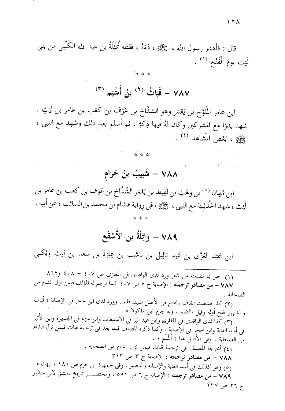 ٧٨٧ - من مصادر ترجمته: الإصابة ج ٥ ص ٤٠٧ كما ترجم له المؤلف فيمن نزل الشام من الصحابة.