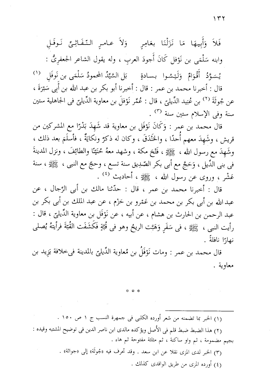يُسَوَّدُ أَقْوَامٌ وَلَيْسُوا بسادةٍ ... بَل السَّيِّدُ المحمودُ سَلْمَى بن نَوفَلِ (¬١)