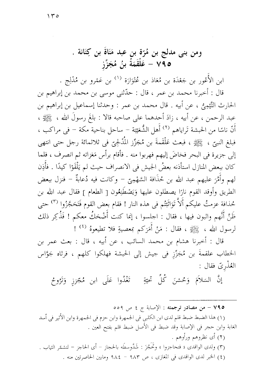 ٧٩٥ - من مصادر ترجمته: الإصابة ج ٤ ص ٥٥٩.