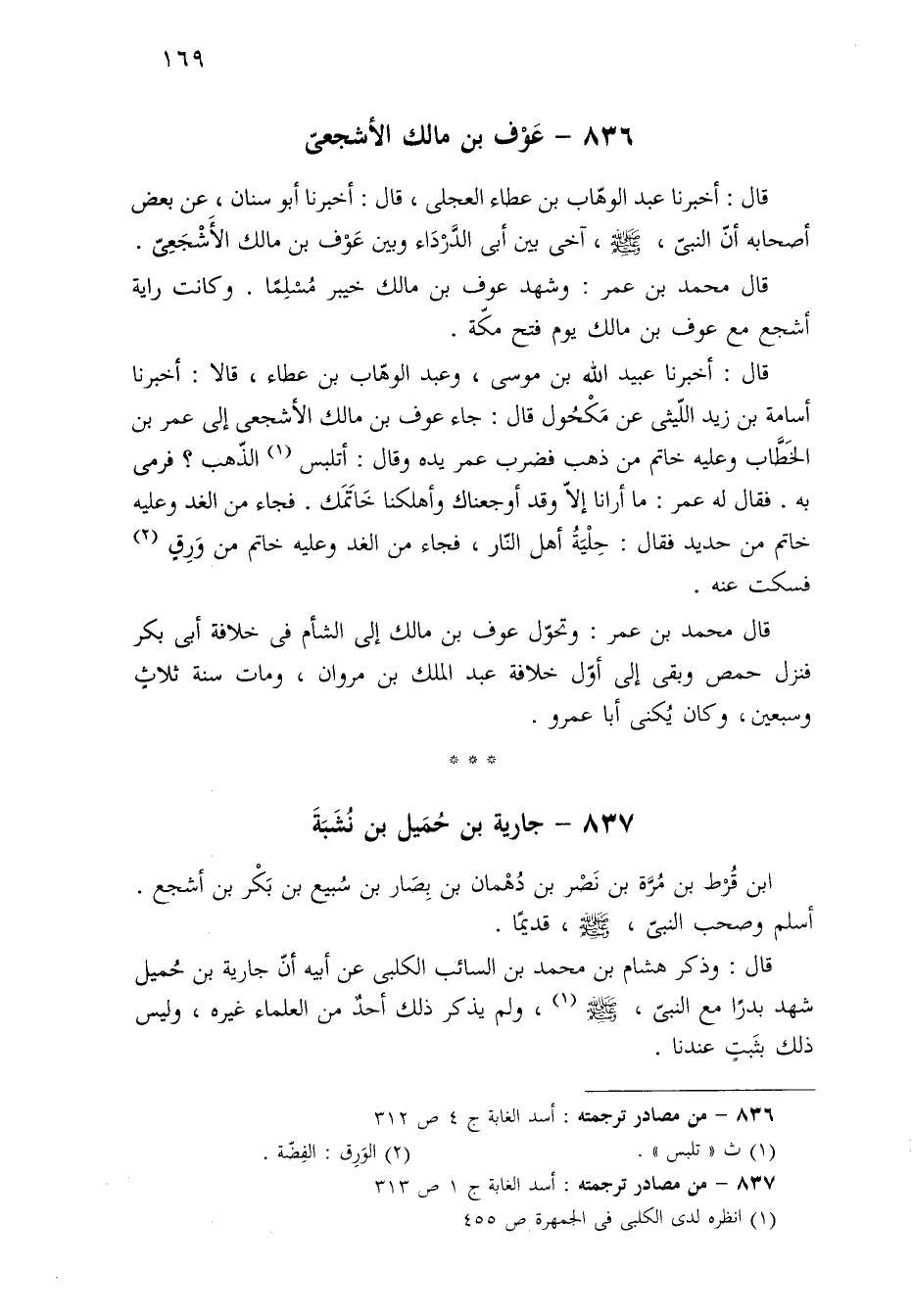 ٨٣٦ - من مصادر ترجمته: أسد الغابة ج ٤ ص ٣١٢.