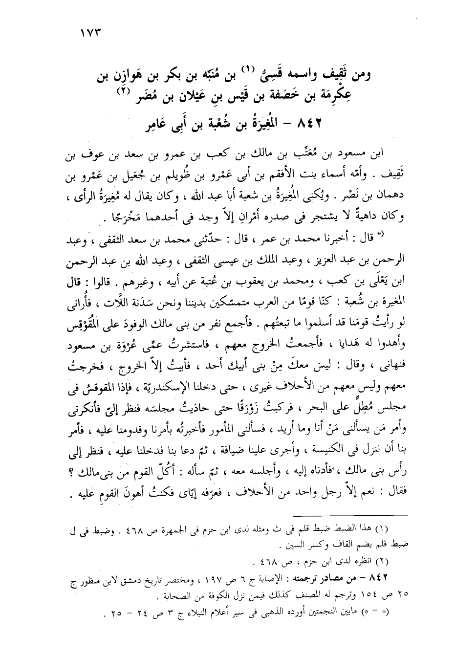 ٨٤٢ - المغُيرَةُ بن شُعْبة بن أَبِي عَامِر