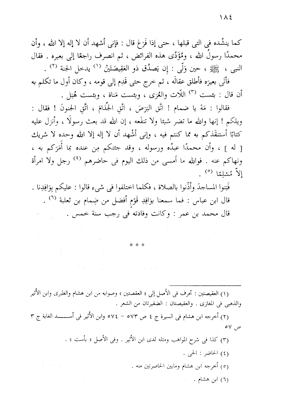 (¬٢) أخرجه ابن هشام في السيرة ج ٤ ص ٥٧٣ - ٥٧٤ وابن الأثير في أسد الغابة ج ٣ ص ٥٧.