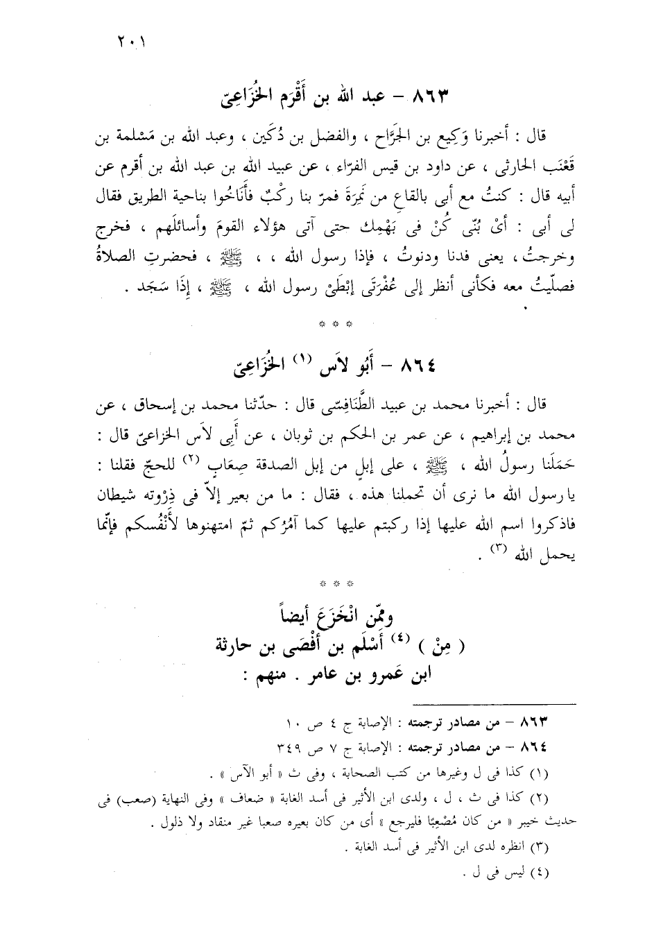 ٨٦٣ - من مصادر ترجمته: الإصابة ج ٤ ص ١٠