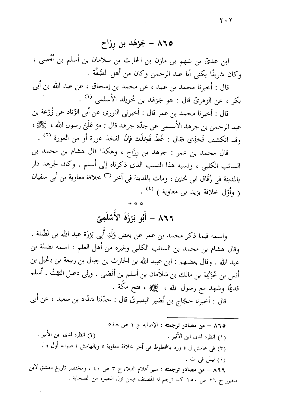 ٨٦٦ - من مصادر ترجمته: سير أعلام النبلاء ج ٣ ص ٤٠، ومختصر تاريخ دمشق لابن منظور ج ٢٦ ص ١٥٠ كما ترجم له المصنف فيمن نزل البصرة من الصحابة.