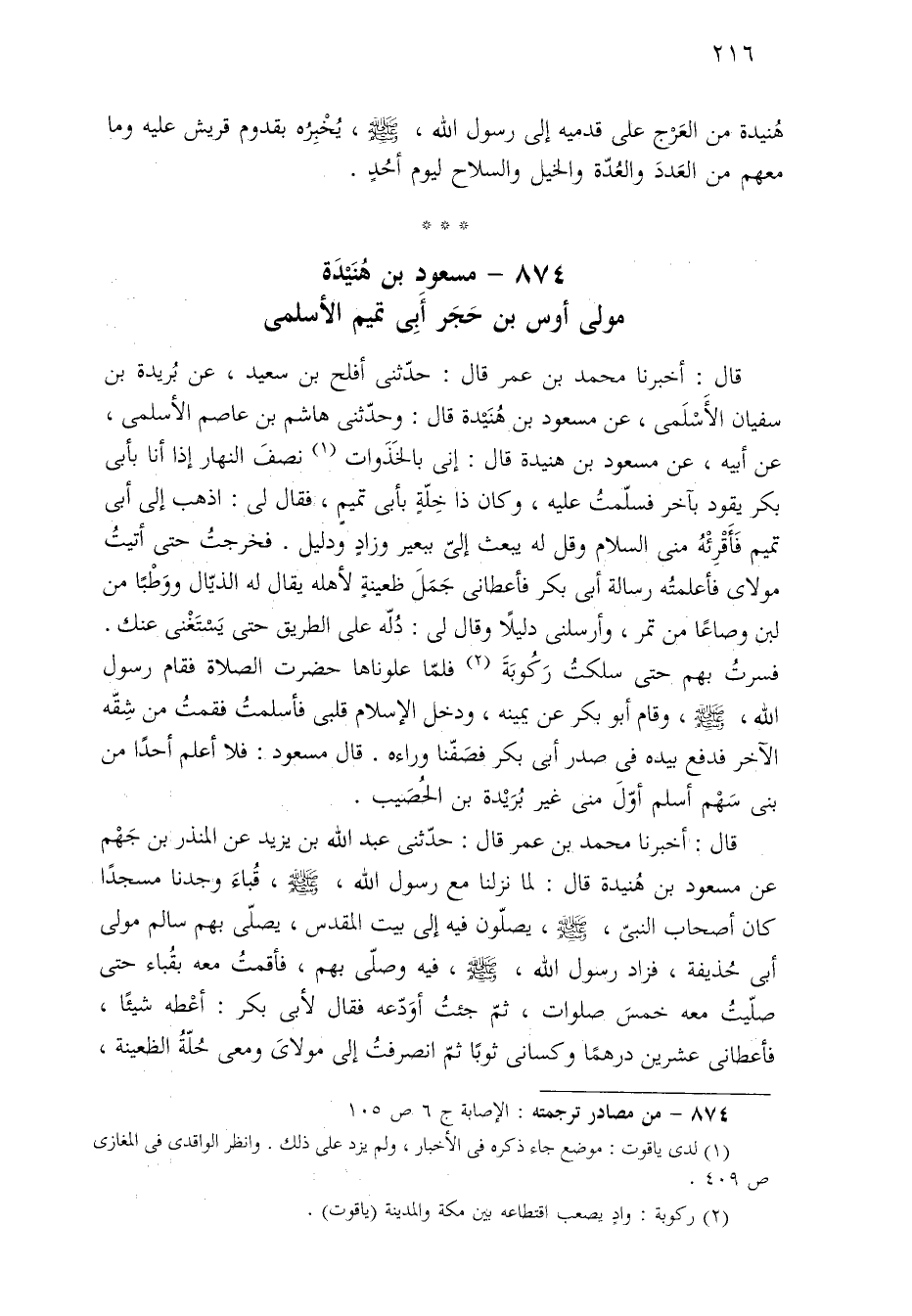 ٨٧٤ - من مصادر ترجمته: الإصابة ج ٦ ص ١٠٥