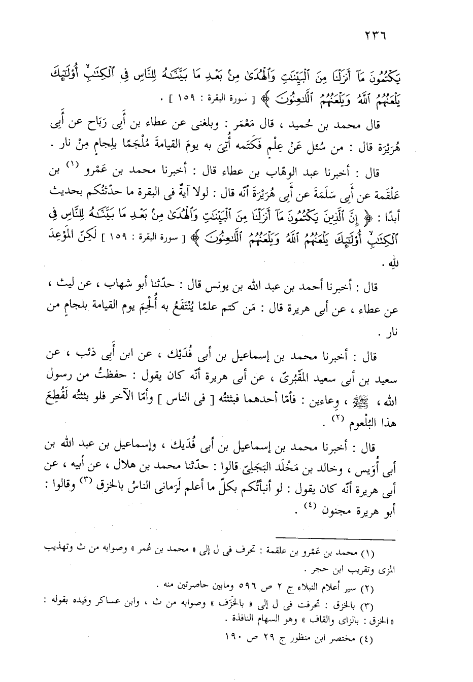 (¬٤) مختصر ابن منظور ج ٢٩ ص ١٩٠.