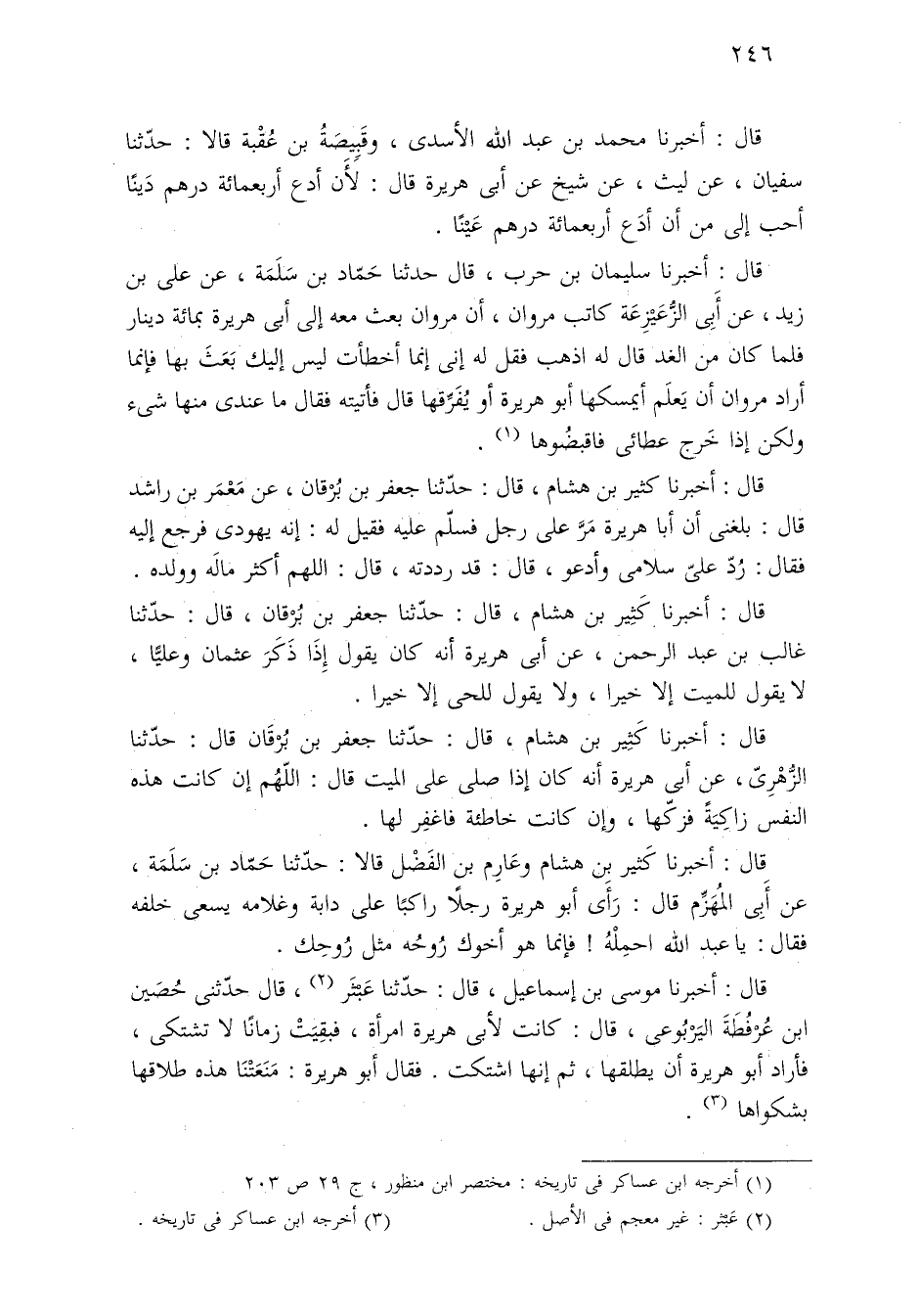 (¬١) أخرجه ابن عساكر في تاريخه: مختصر ابن منظور، ج ٢٩ ص ٢٠٣.