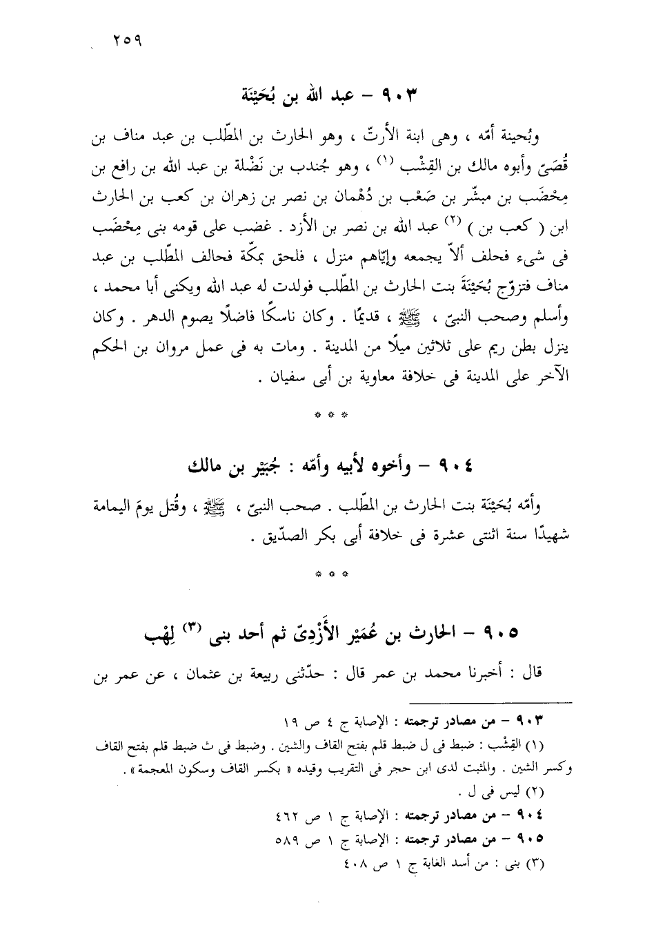 ٩٠٥ - من مصادر ترجمته: الإصابة ج ١ ص ٥٨٩