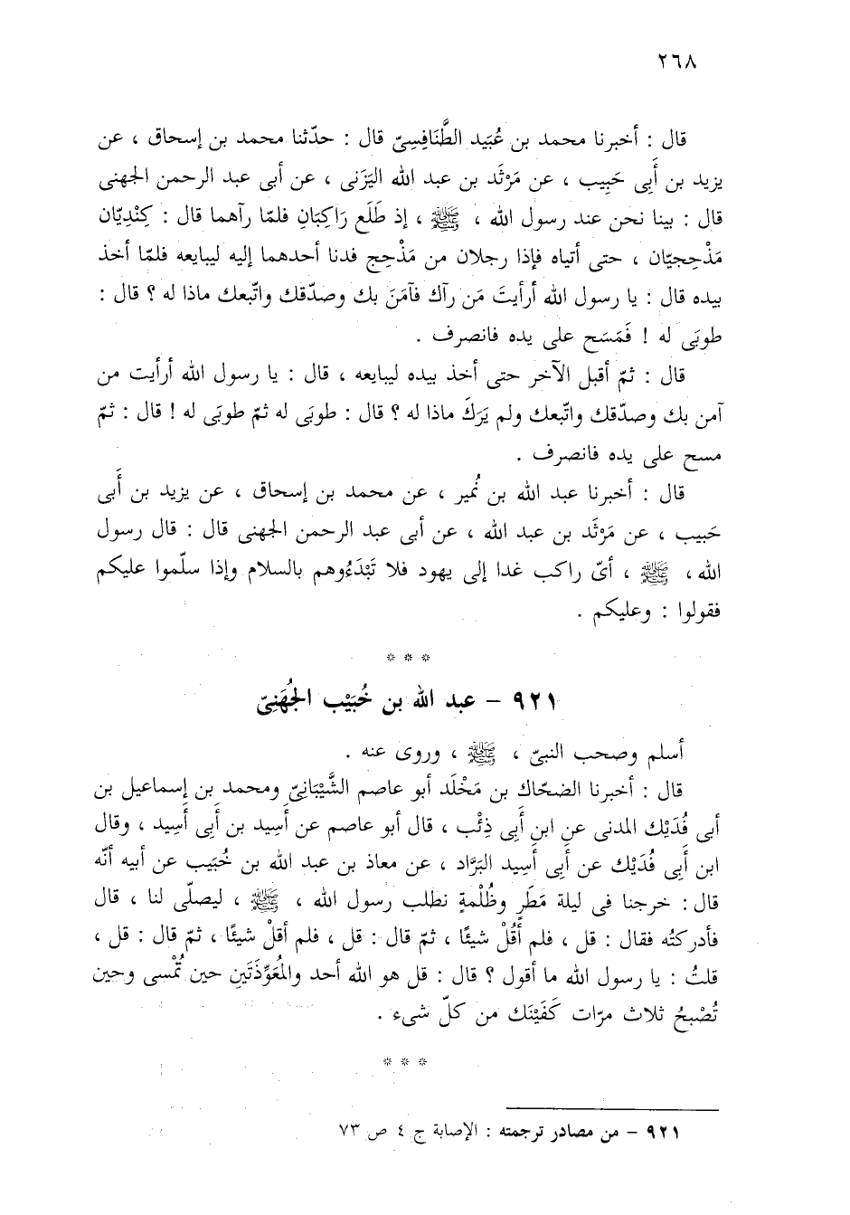 ٩٢١ - من مصادر ترجمته: الإصابة ج ٤ ص ٧٣.