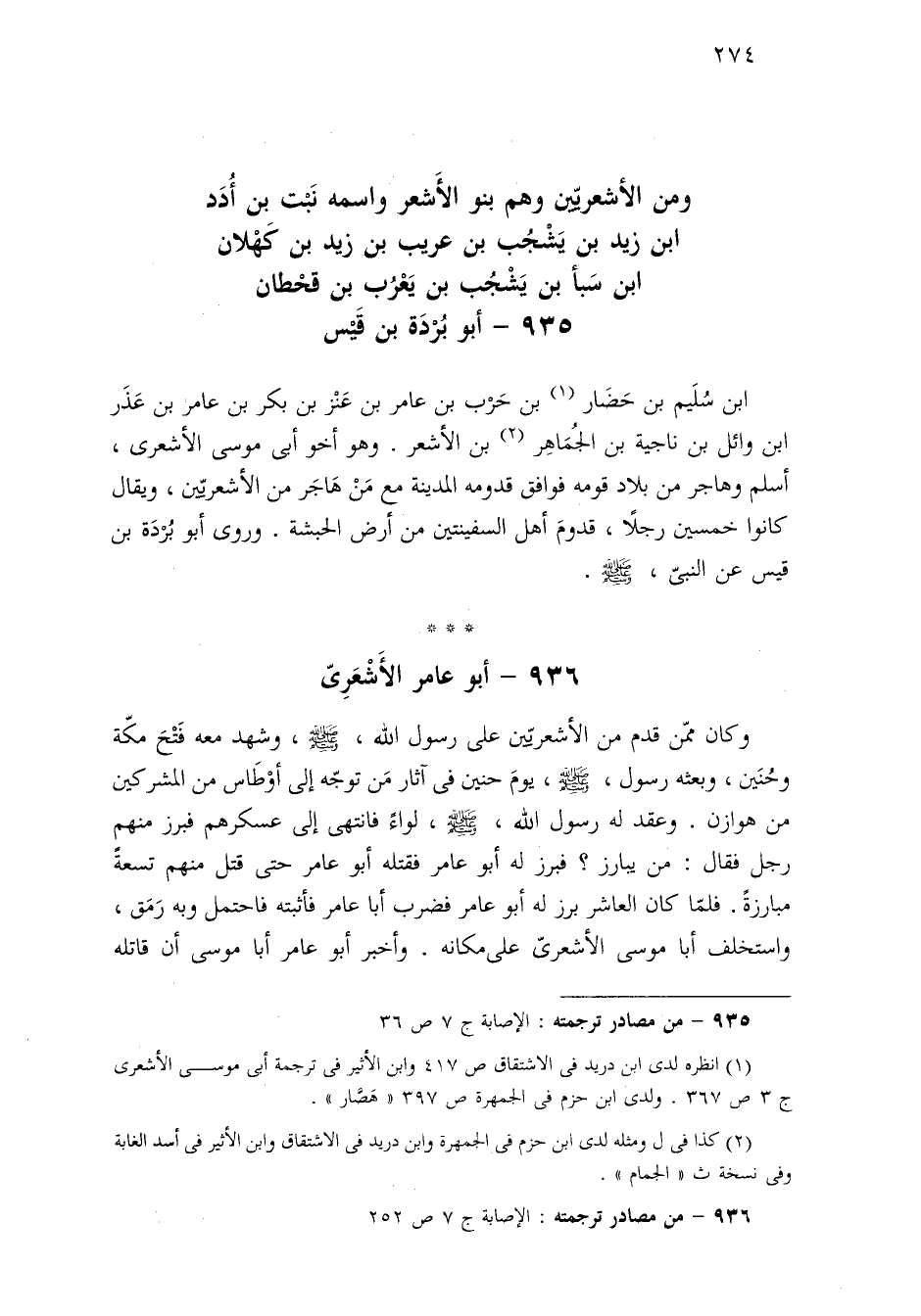 ٩٣٥ - من مصادر ترجمته: الإصابة ج ٧ ص ٣٦