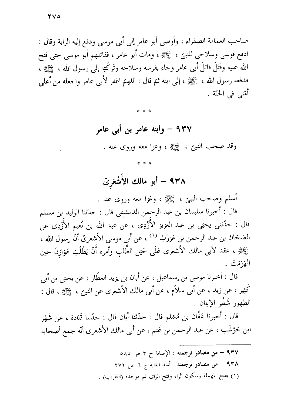 ٩٣٧ - من مصادر ترجمته: الإصابة ج ٣ ص ٥٨٥