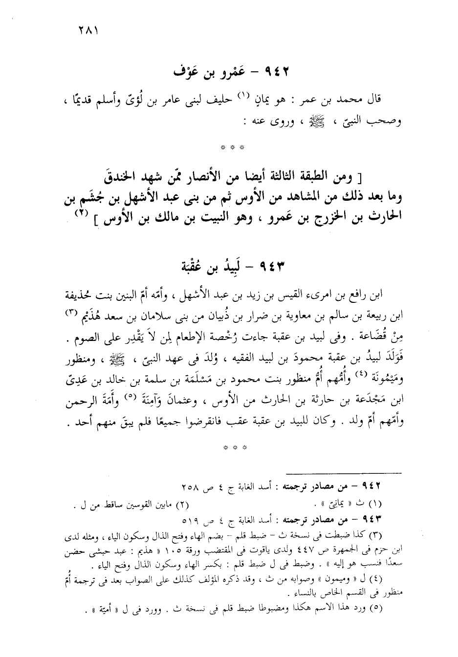 ٩٤٣ - من مصادر ترجمته: أسد الغابة ج ٤ ص ٥١٩.