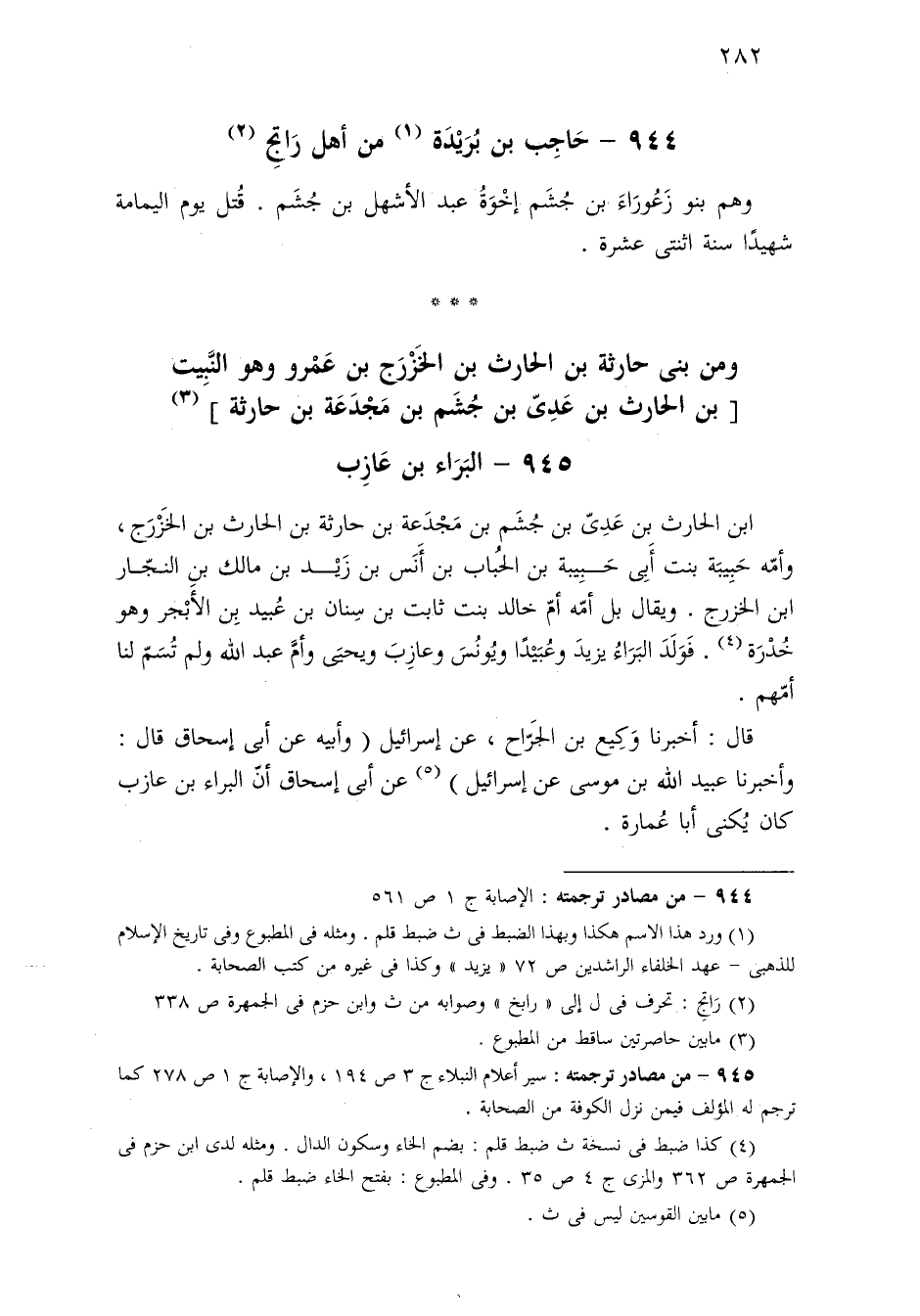 ٩٤٤ - من مصادر ترجمته: الإصابة ج ١ ص ٥٦١