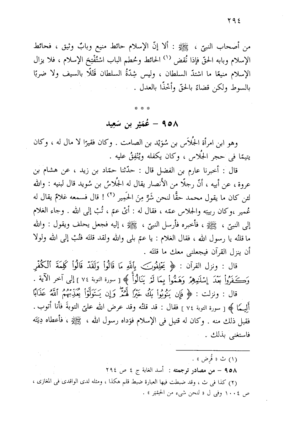 ٩٥٨ - من مصادر ترجمته: أسد الغابة ج ٤ ص ٢٩٤.