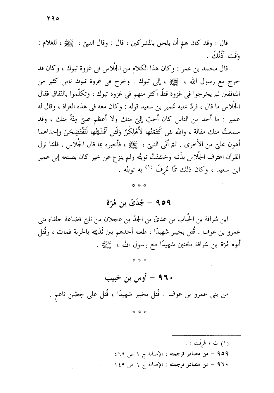 ٩٥٩ - من مصادر ترجمته: الإصابة ج ١ ص ٤٦٩