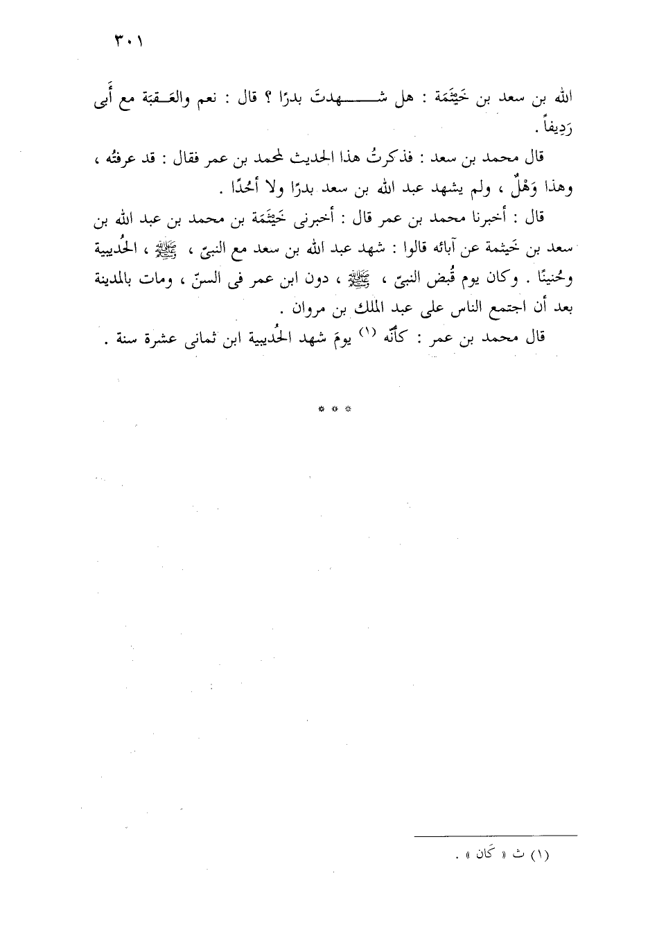 قال محمّد بن سعد: فذكرتُ هذا الحديث لمحمد بن عمر فقال: قد عرفتُه، وهذا وَهْل، ولم يشهد عبد الله بن سعد بدرًا ولا أحُدًا.