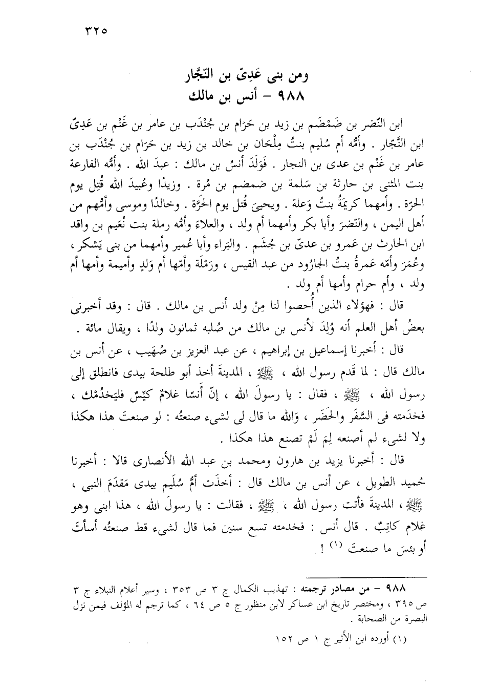 ٩٨٨ - من مصادر ترجمته: تهذيب الكمال ج ٣ ص ٣٥٣، وسير أعلام النبلاء ج ٣ ص ٣٩٥، ومختصر تاريخ ابن عساكر لابن منظور ج ٥ ص ٦٤، كما ترجم له المؤلف فيمن نزل البصرة من الصحابة.