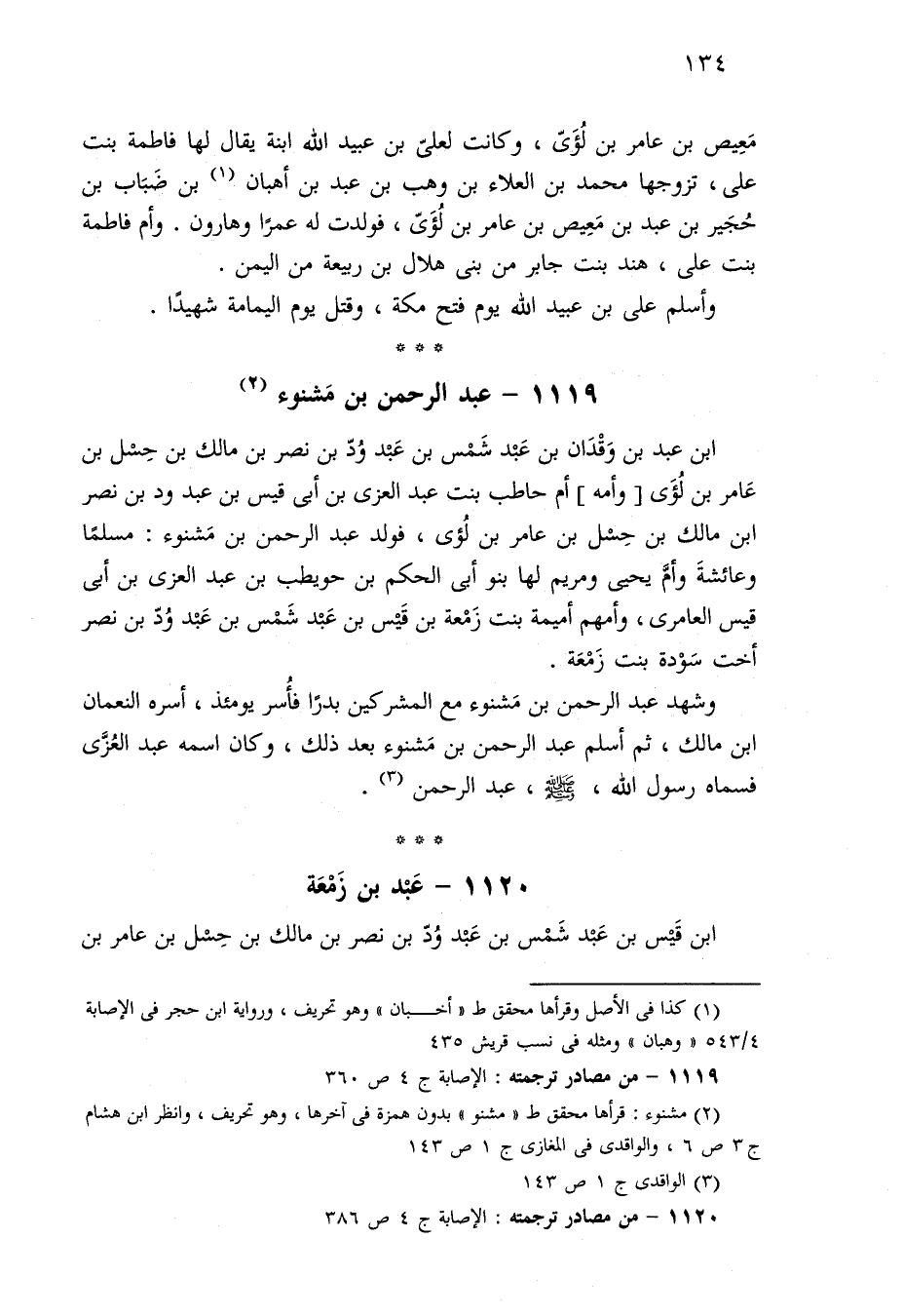 ١١٢٠ - من مصادر ترجمته: الإصابة ج ٤ ص ٣٨٦