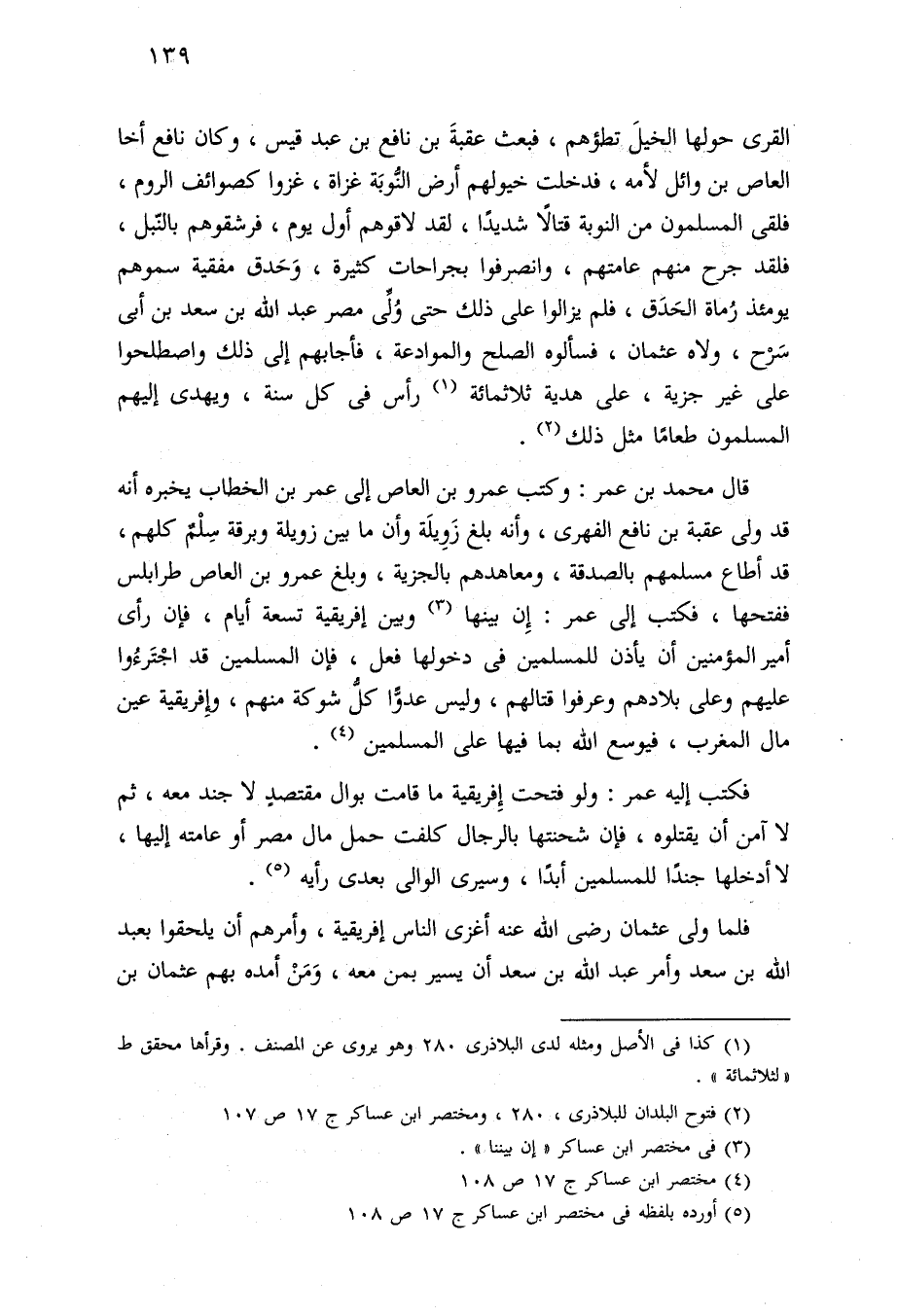 (¬٢) فتوح البلدان للبلاذرى، ٢٨٠، ومختصر ابن عساكر ج ١٧ ص ١٠٧.