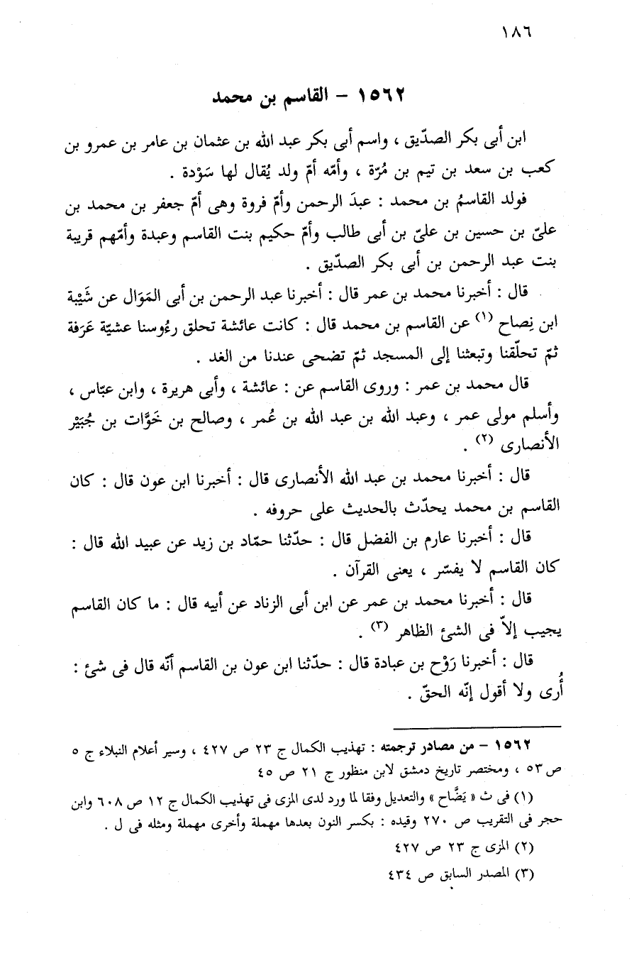 ١٥٦٢ - من مصادر ترجمته: تهذيب الكمال ج ٢٣ ص ٤٢٧، وسير أعلام النبلاء ج ٥ ص ٥٣، ومختصر تاريخ دمشق لابن منظور ج ٢١ ص ٤٥.