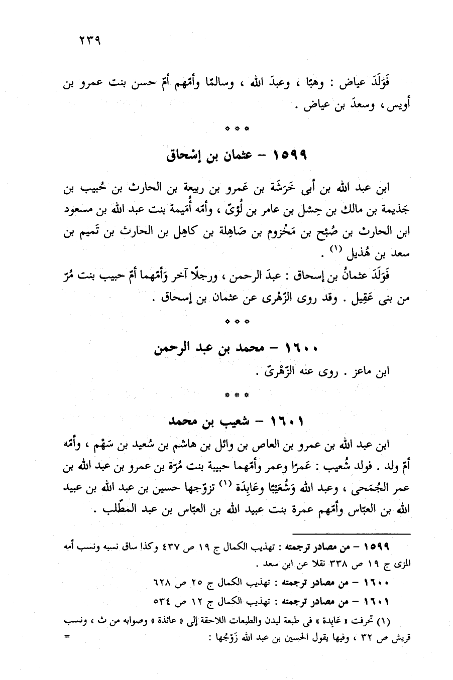 ١٥٩٩ - من مصادر ترجمته: تهذيب الكمال ج ١٩ ص ٤٣٧ وكذا ساق نسبه ونسب أمه المزى ج ١٩ ص ٣٣٨ نقلا عن ابن سعد.