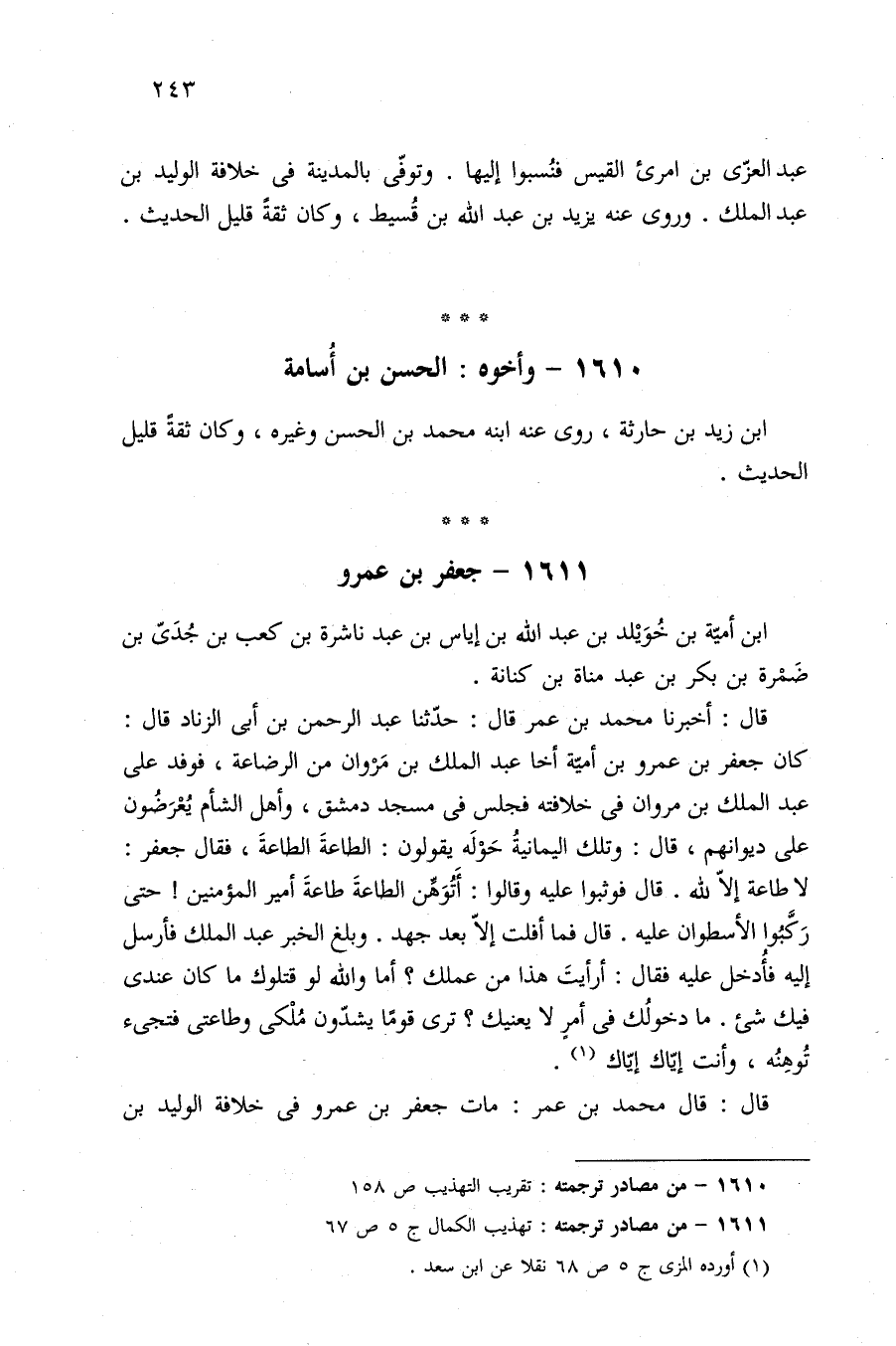١٦١١ - من مصادر ترجمته: تهذيب الكمال ج ٥ ص ٦٧.