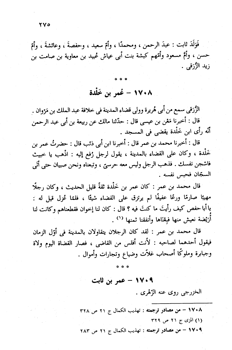 ١٧٠٨ - من مصادر ترجمته: تهذيب الكمال ج ٢١ ص ٣٢٨.