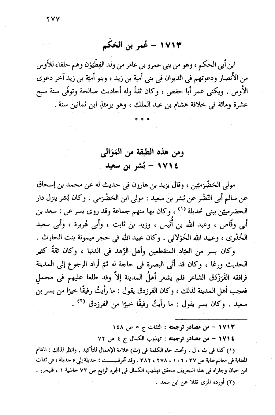 ١٧١٤ - من مصادر ترجمته: تهذيب الكمال ج ٤ ص ٧٢.