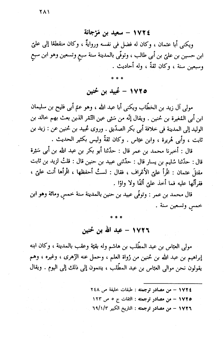 ١٧٢٥ - من مصادر ترجمته: الثقات ج ٥ ص ١٢٣.