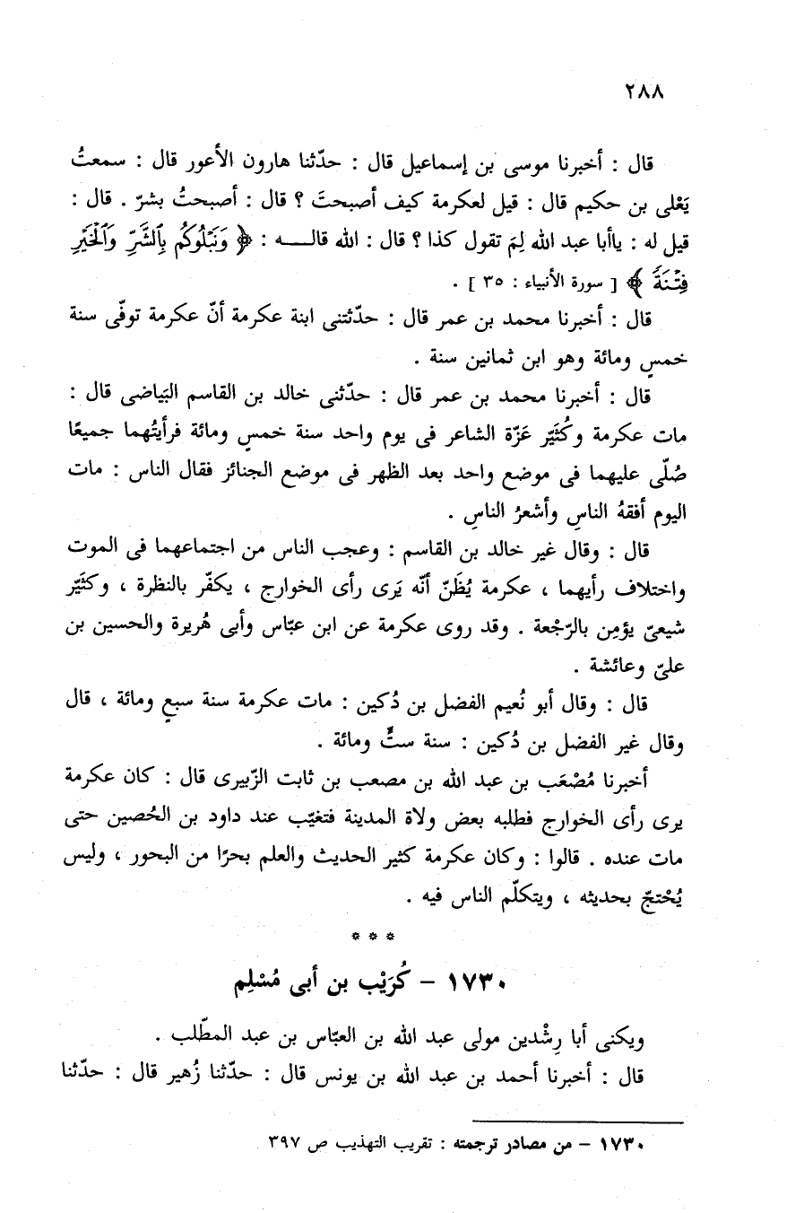 ١٧٣٠ - من مصادر ترجمته: تقريب التهذيب ص ٣٩٧.