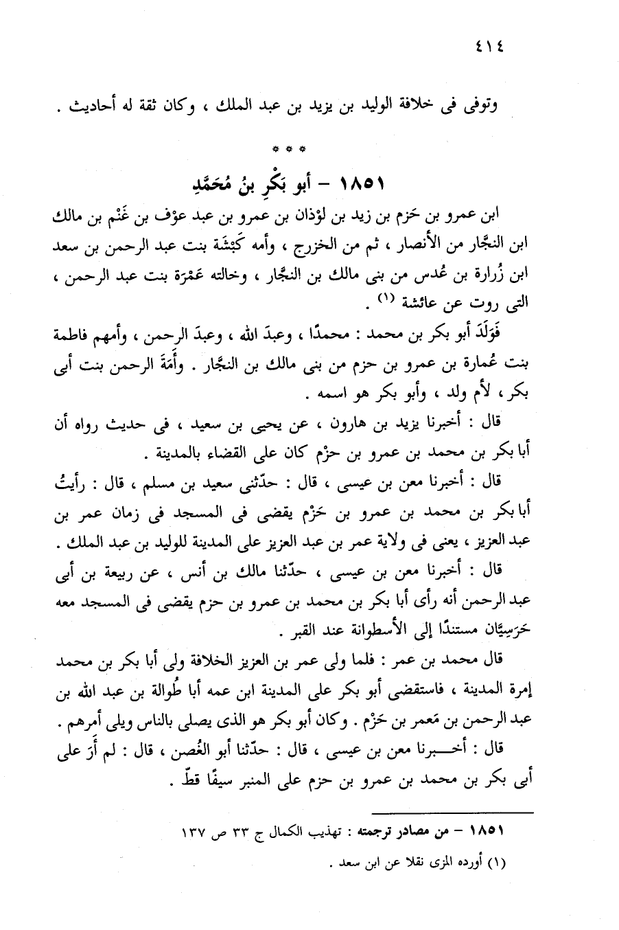 ١٨٥١ - من مصادر ترجمته: تهذيب الكمال ج ٣٣ ص ١٣٧.