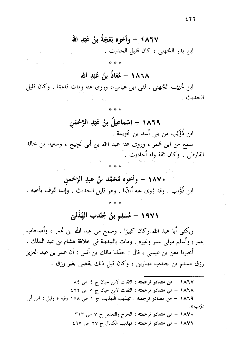 ١٨٦٨ - من مصادر ترجمته: الثقات لابن حبان ج ٥ ص ٤٢٢.