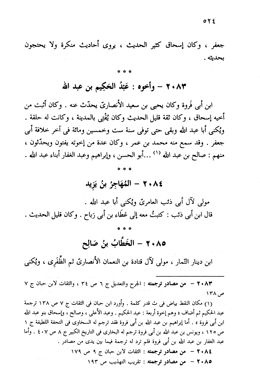 ٢٠٨٤ - من مصادر ترجمته: الثقات لابن حبان ج ٩ ص ١٧٩.